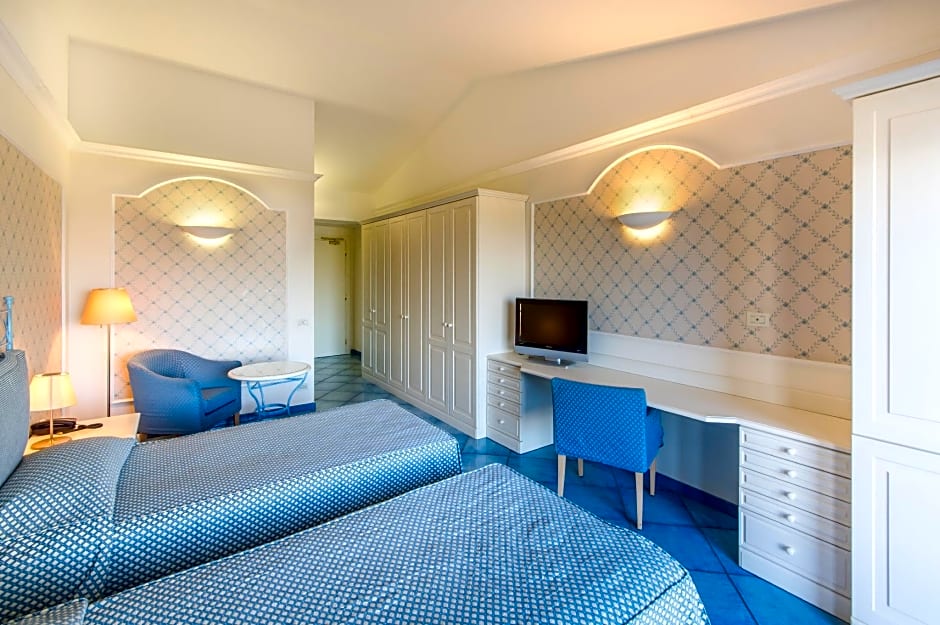 double superior is 355 square feet and includes either a queen-size bed 150-154 width or 2 single beds 80-130 width plus balcony, terrace, extra beds on demand, hairdryer, safe, and bathrobes and is Wheelchair-accessible.