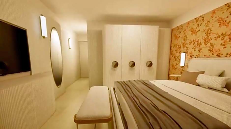 MASTER DELUXE ROOM is 377 square feet and includes a queen-size bed 150-154 width plus hairdryer and safe.