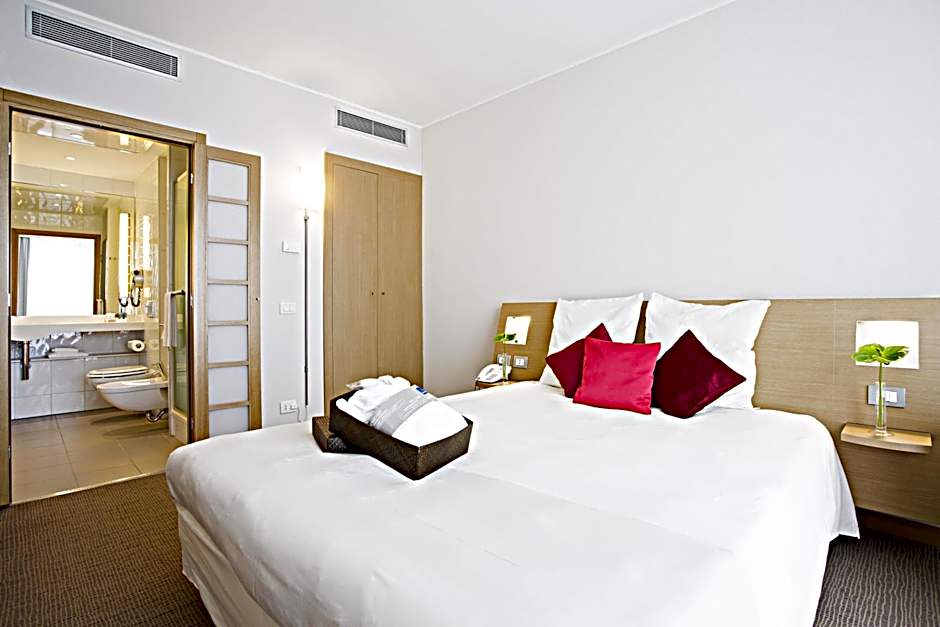 At Novotel Milano Malpensa Aeroporto, guests can choose from rooms such as Executive King Rooms with Sofa or Superior Twin Rooms. The occupancy in these rooms varies, accommodating up to 3 adults and 2 children. Smoking is not allowed in any of the rooms, and bed sizes range from Twin to Queen, with some rooms featuring sofa beds.