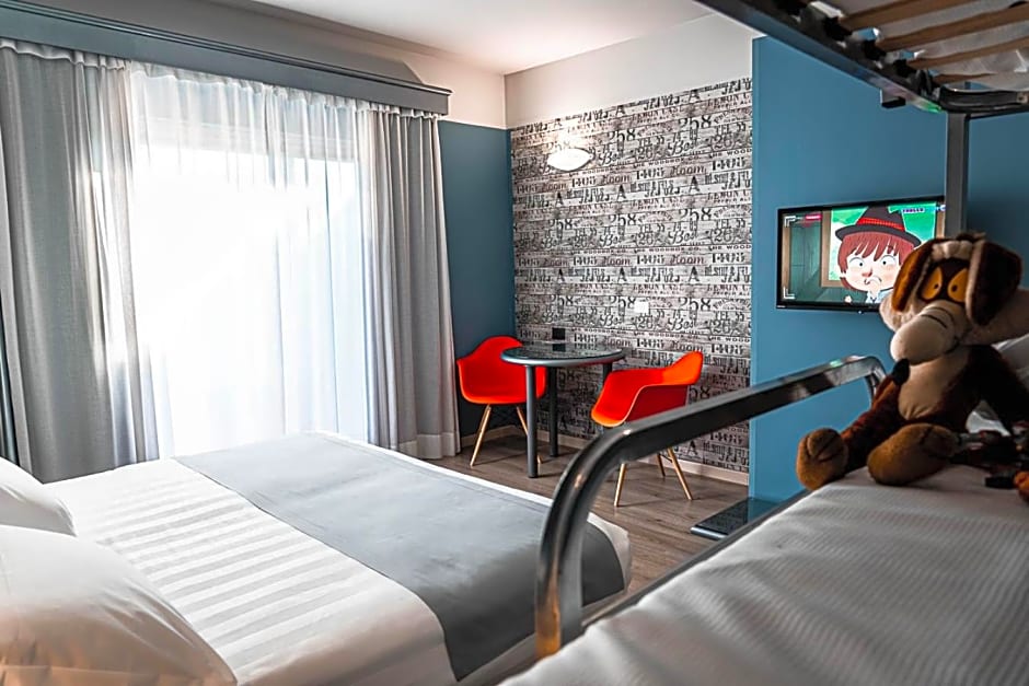 The hotel offers a variety of rooms including Standard Double Rooms, Lofts, Studios, Standard Twin Rooms, Duplex Apartments, Superior Twin Rooms, Family Rooms (2 Adults + 2 Children), Family Rooms (2 Adults + 1 Child), Small Double Rooms, Superior Single Rooms, Family Rooms with Terrace (2 Adults + 3 Children), Romantic Bubbles, and Superior Double Rooms. Occupancy ranges from single occupancy to four adults with various bed sizes available. Smoking is not allowed in any of the rooms.