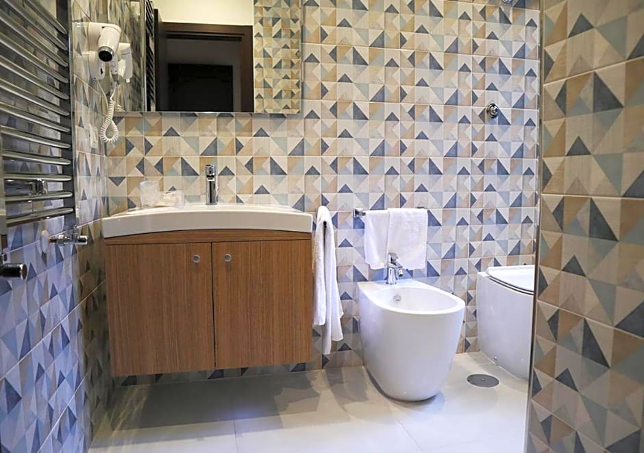 At Residenza La Reggia, comfort is key. The Family Suite offers plush bedding and a well-appointed private bathroom stocked with complimentary toiletries, ensuring a relaxing and enjoyable stay for all guests. Unwind in style in this stylishly designed room, complete with all the essentials for a memorable trip to Caserta.