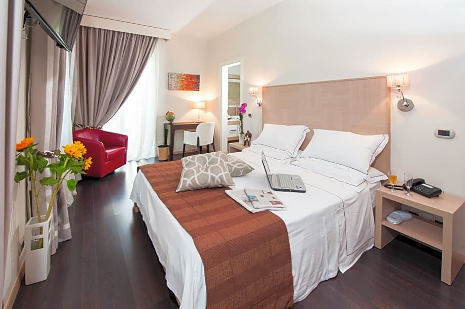 Boasting a living area with sofa and 2 covered balconies, this very spacious junior suite with parquet floors offers a 25" LCD TV with Sky channels, armchair and bathroom with large shower. Also includes a mini-bar, free Wi-Fi and air conditioning.