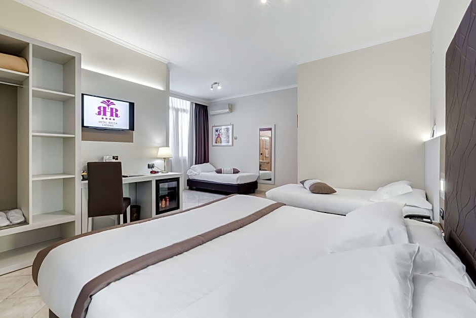 The Best Western Hotel Rocca offers a variety of room options including Standard Single, Standard Queen, Standard Twin, Suite with private Spa, Comfort Triple, Junior King Suite, and Family Rooms. Smoking is not allowed in any of the rooms. Occupancy ranges from 1 adult in the Standard Single Room to 4 adults in the Family Room. Bed sizes range from Twin beds to Queen and King size beds. Room sizes vary from 215 sqft to 646 sqft.