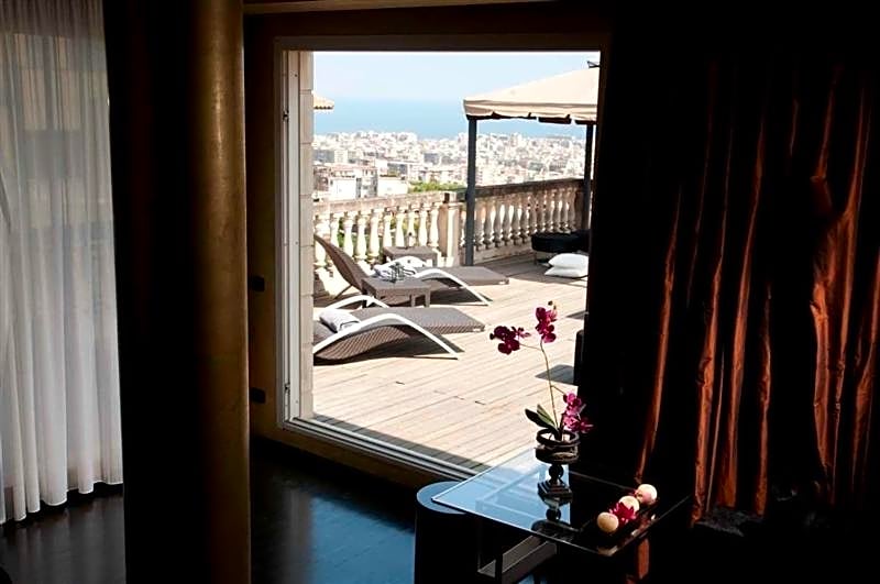 The Presidential Suite is extra-large and luxurious, offering a 328 ft² terrace with hot tub. With a view of Mount Etna or the sea, it has separate living and sleeping areas. It also includes free Wi-Fi, a coffee machine and a 43" LCD TV. It features gold or silver metallic walls and Macassar ebony furniture, including a walk-in wardrobe.