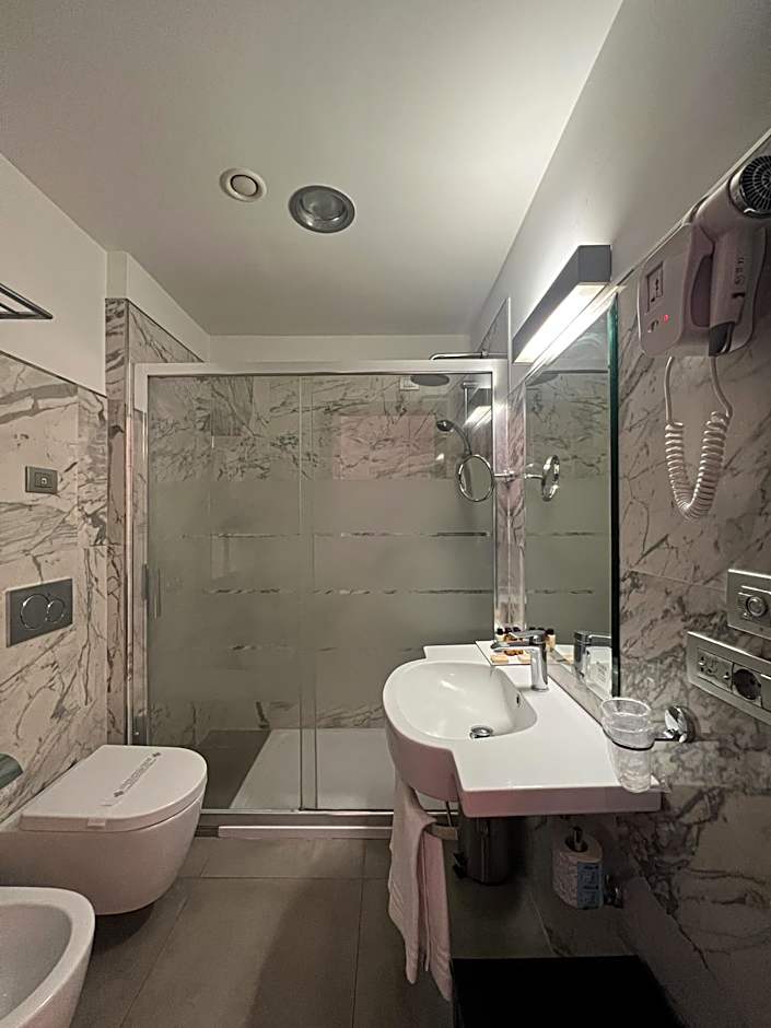 - the first floor rooms have a wonderful terrace, pleasant to go out to all year round (probably), - the service is great, and they were able to accommodate a nonstandard favor request - the beds are very comfortable, and the bathroom had a nice, clean, large shower
