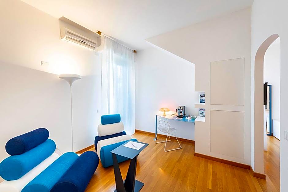 This spacious and elegantly furnished suite has design furniture, parquet floors and free WiFi. Also features a hot tub with chromotherapy function and small balconies with sea or garden view depending on availability.