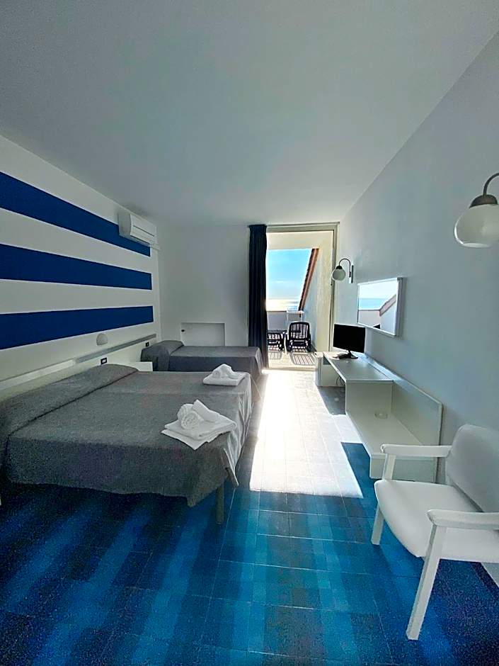 The quadruple room offers air conditioning, a wardrobe, a terrace with sea views as well as a private bathroom featuring a shower. The unit offers 3 beds.