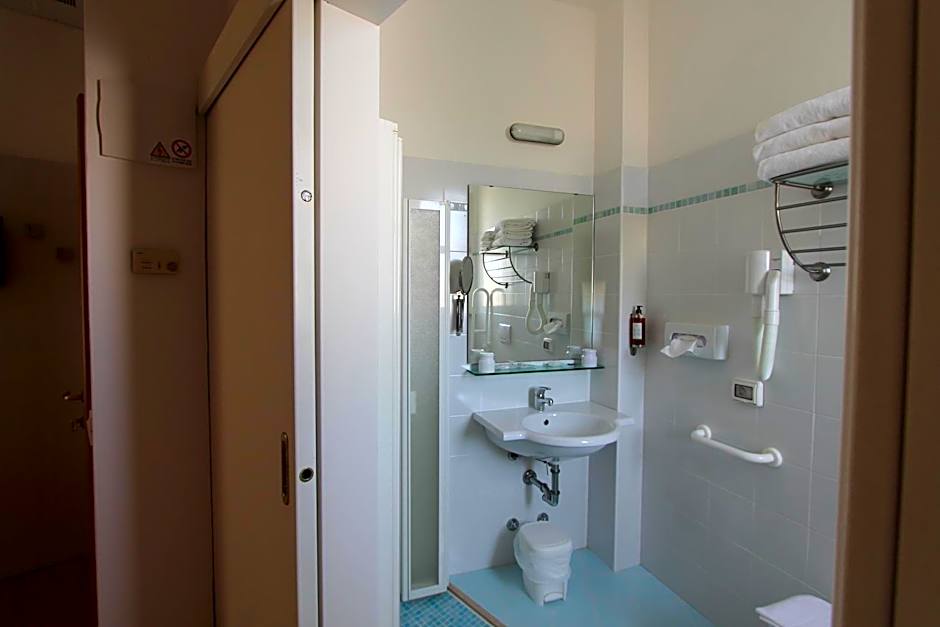 We’ve enjoyed this area of Cervia. Also enjoyed the view over the top of the pineta from our 4th story balconcino. The staff were kind enough to open up the second room of our double room with “due camere comunicanti” when they discovered that we weren’t a couple, but mother and son who specifically chose this room to have separate sleeping. We felt lucky to have suffered only minimal “discussion” about the apparent mislabeling of the two-person package on the portal. Caveat: according to the hotel the second adjoining room of the ‘family suite’ is only opened if you buy a three-person stay. Otherwise when you check in you find a shut door and behind it an unused room with the single bed.