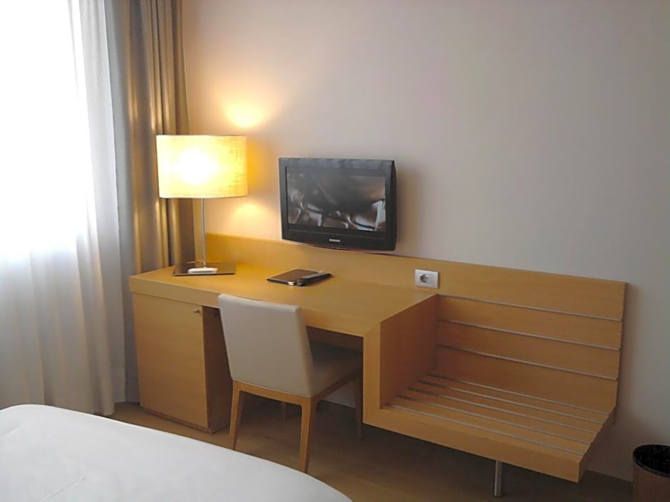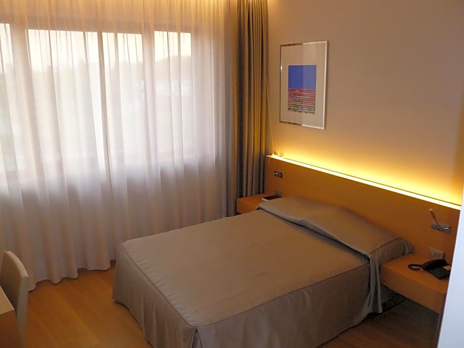 Breakfast is reasonable for a 3-star hotel. Coffee was better than in most hotels, although worse than in most bars in Italy. Rooms were very large with a nice table and lazy chair. Nice set of toiletries. Hotel near the road and 20 minutes away from the center on foot. Bed was reasonable. Available parking space, covered. I may reuse it.