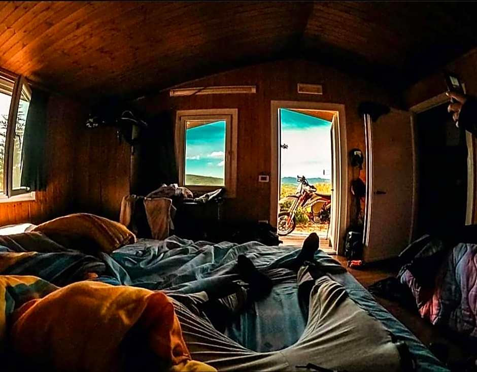 Simple hut with a bathroom, AC and a terrace in front of each hut. Nice dinner with homemade fresh pasta. Good italian breakfast. It is placed in lonely hills with absolute peace and quiet. The price is really economico. Friendly staff.