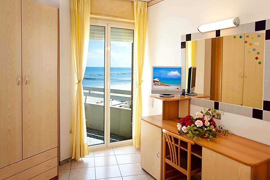 Everything was just perfect: staff were extremely helpful, always smiling, all of them spoke very good english. Rooms as well as the whole hotel were clean. There were plug adapters in the room so that guests from foreign countries could easily use the power plugs. Our room had a fridge, hair dryer and tv set. Air conditioning worked as required. Bathroom was rather small but sufficient (washbasin as well as shower were quite large and comfortable). Our room had a balcony (as probably all rooms) with sea view, equipped with tower rack for drying swimsuits, towels atc. and plastic chairs to sit on. The hotel has a swimming pool with shallow and deep part so that you can play with children in the shallow part and they can also enjoy jumping into the water in the deep part. There is also a small pool for small kids and a whirlpool. The location of the hotel just across the road from the beach made the transfers with a child to the beach very comfortable. We always had a parking space for our car. Breakfast offered plenty of sweet and savoury food, tea, coffe, milk, juices etc. We also had dinners in hotel restaurant - you must book a table on the previous day and order meals in the morning at the latest. The dinners were delicious, involved a salad bar with plenty of seafood, vegetables and various salads, first and second course and a sweet dessert. I would definitely recommend this hotel.