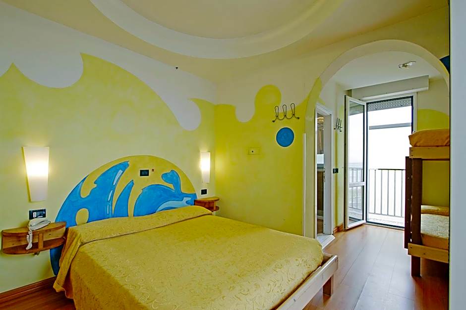 This air-conditioned quadruple room is consisted of of a flat-screen TV with cable channels, a private bathroom as well as a terrace with sea views. The unit has 3 beds.