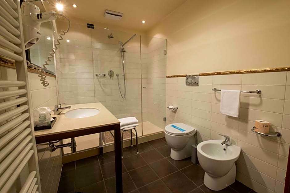 The spacious twin/double room features air conditioning, a wardrobe, as well as a private bathroom boasting a shower and a bidet. The twin/double room offers a flat-screen TV with satellite channels, a safe deposit box, a carpeted floor and heating. The unit has 1 bed.