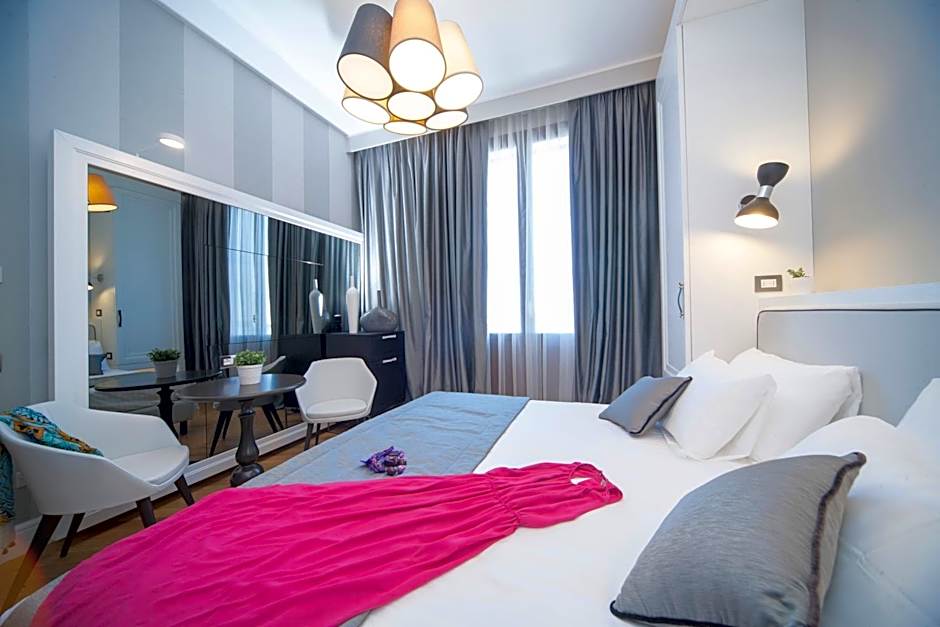 Indulge in the spacious 646 sqft Suite Grande Italia, featuring two King size beds and a Sofa Bed, accommodating up to 5 adults and 1 child. Enjoy amenities like air conditioning, soundproof rooms, and free toiletries for a comfortable stay.