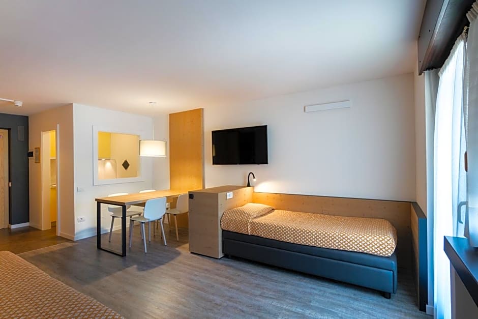 With a range of apartment options, from spacious two-bedroom units to charming studios complete with balconies, Residence Lastei is perfectly suited for couples, solo travelers, or families alike. Each apartment is designed to provide you with comfort and convenience, making it a perfect retreat after a day filled with exploration. Indulge in the soothing warmth of the heated indoor pool or melt away your tensions in the sauna. At Residence Lastei, every corner is infused with warmth and joyful moments, ensuring your stay in beautiful Col San Martino is a memorable one!