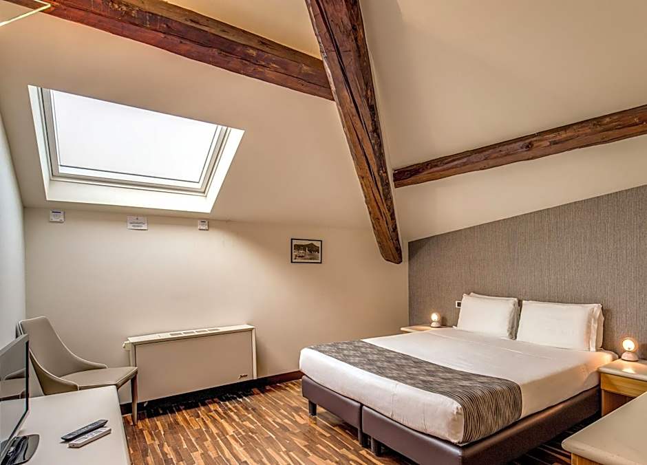Larger, room with attached bathroom offering free Wi-Fi, and overlooking Piazza Volta square. Please specify bed preference when booking. Air conditioning is available from 1 May until 21 September, while heating from 15 October until 10 April.