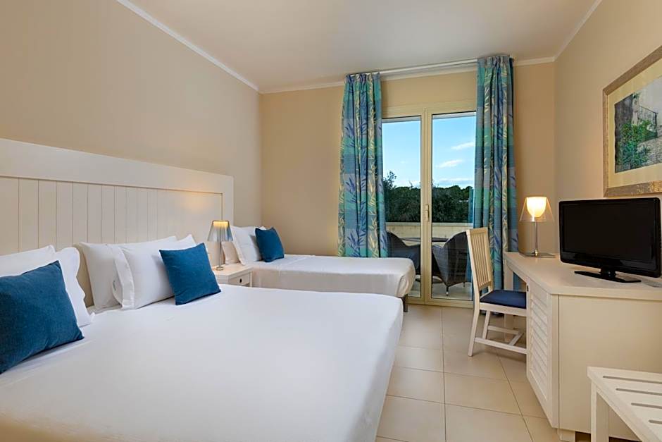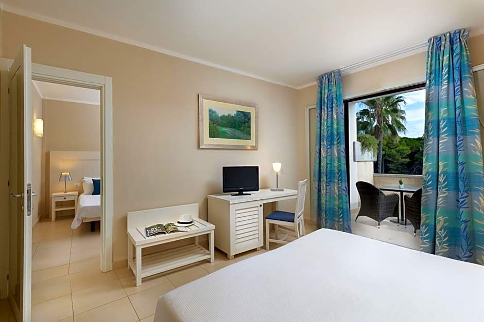 A wonderful setting in the pine woods, very pleasant for walking to the beach (of course, continuous free transfers to the beach are provided). The beach is very well organized, some rocks in the see and a very pleasant breeze all the time. A very nice and maintained full size pool. Rooms very clean, staff extremely kind.