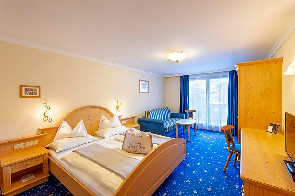 Hotel Gran Fanes offers a variety of room types including small double rooms, single rooms, triple rooms, quadruple rooms, double rooms, and junior suites. All rooms are non-smoking and have different occupancy limits. The rooms range in size from 140 sqft to 323 sqft. Bed sizes vary and include queen, twin, king, and bunk beds.