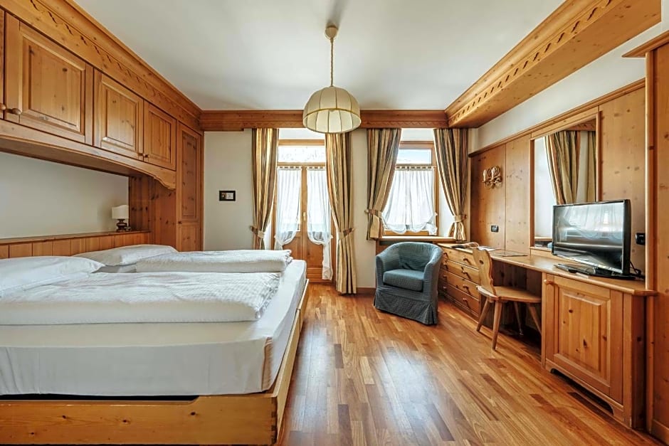 This larger room offers a flat-screen TV with satellite channels, mini-bar, wooden furnishings and wooden floors. Its bathroom is complete with a hairdryer and free toiletries. It features a balcony overlooking the Dolomites.