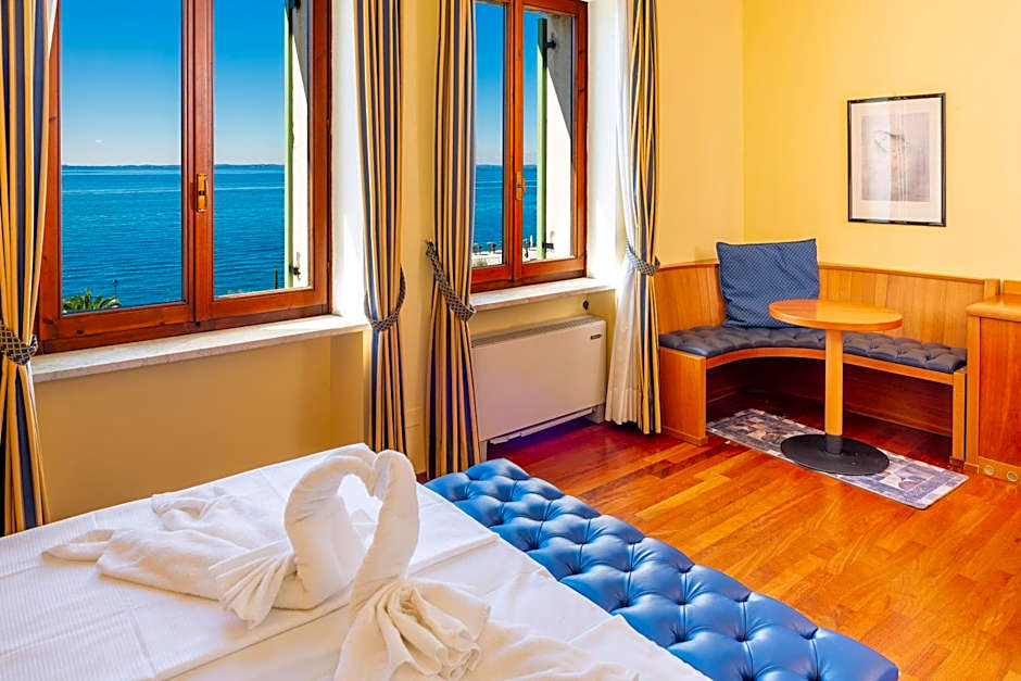 Great location, few minutes away from the center by foot. Just leave the car in the hotel parking (very important in Garda) and just walk along the lake shore. Although it would need a deep renovation, thanks to some minor updates in the last decade, this hotel is still able to make you feel special and somehow privileged. Our room didn't face the lake but we were able to enjoy the amazing lake views from a wonderful shared terrace with sunbeds and from the beautiful garden.