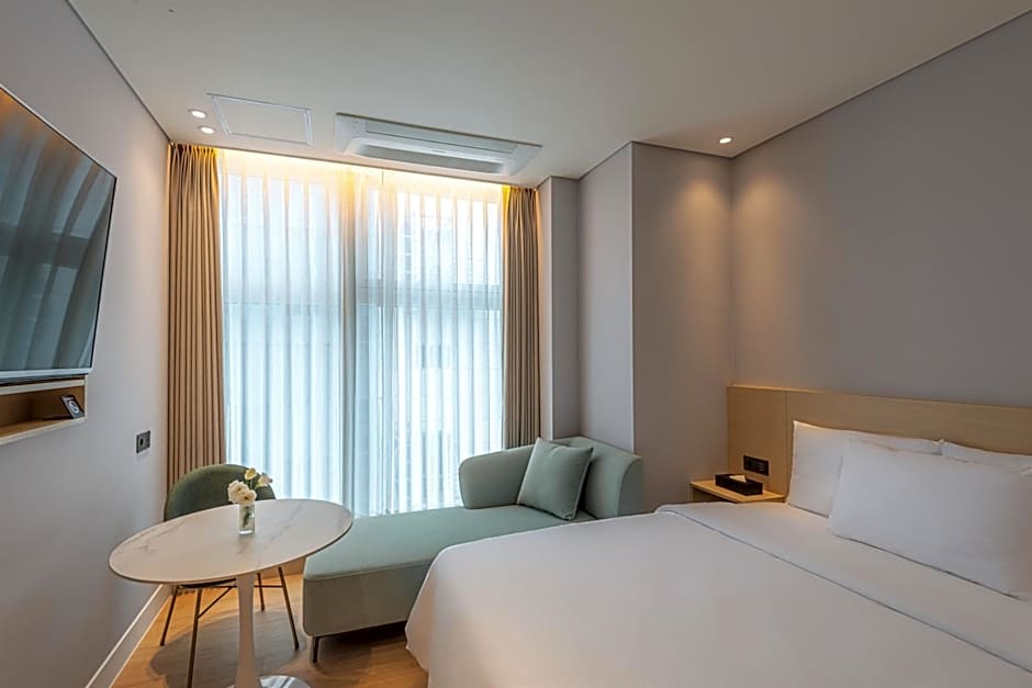 Modernly furnished room equipped with a private balcony overlooking the harbor. Bed configuration preference is subject to hotel availability.
