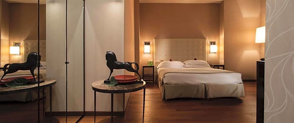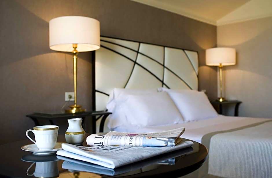 Facing a quiet street of the historical center, this spacious, air-conditioned room decorated in beige and brown features a flat-screen TV, dark wood furnishings, and velvet armchairs. Includes Egyptian cotton bed linen and bathrobes.