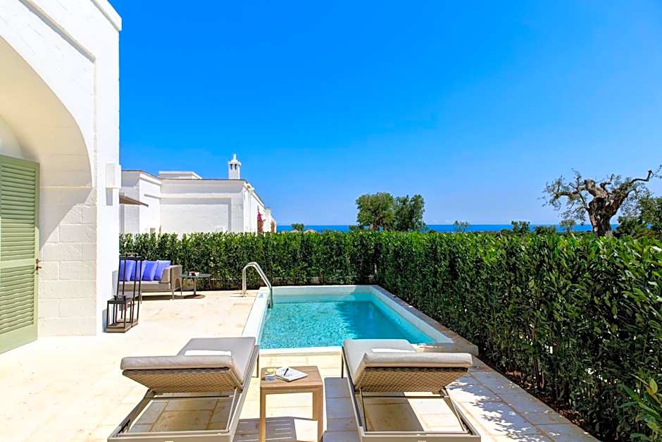 The hotel at Rocco Forte Masseria Torre Maizza has a seasonal outdoor pool. It is noted to be heated, with a shallow end, and offers a view.