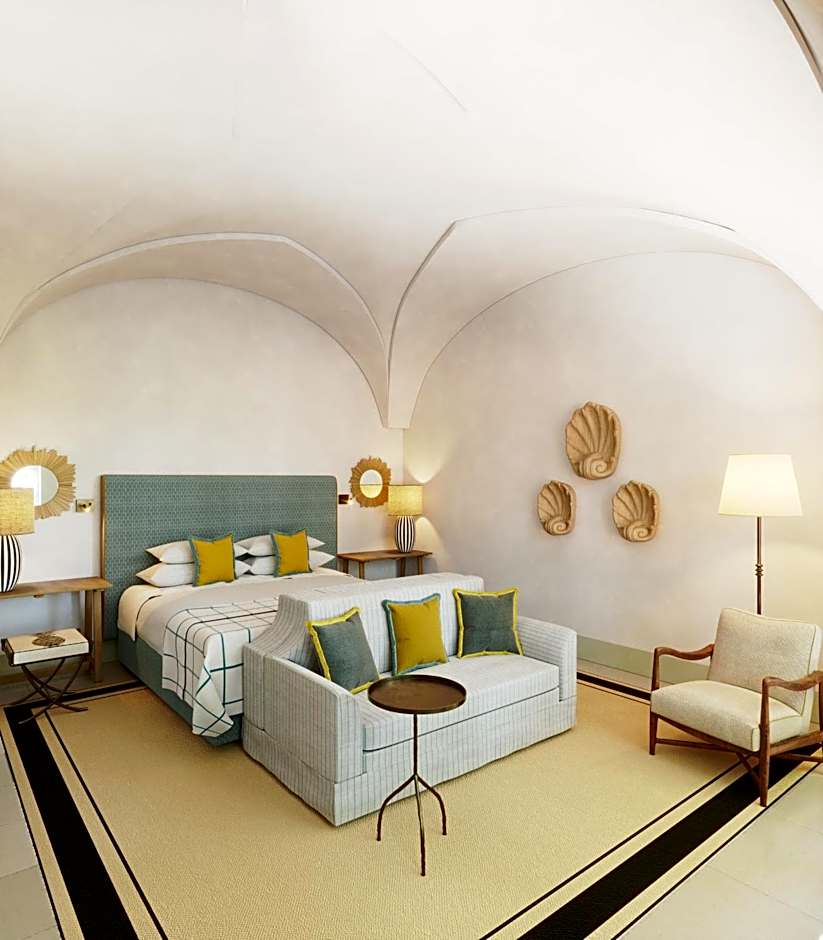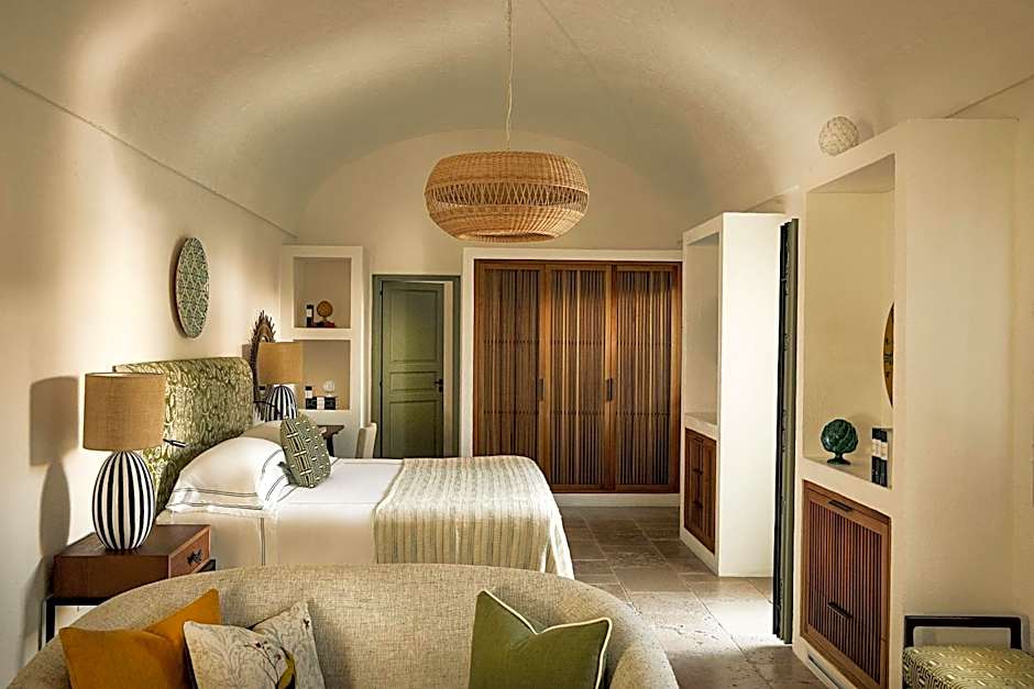 Here you will find spacious rooms featuring white tuff walls, vaulted ceilings, and elegant furnishings.