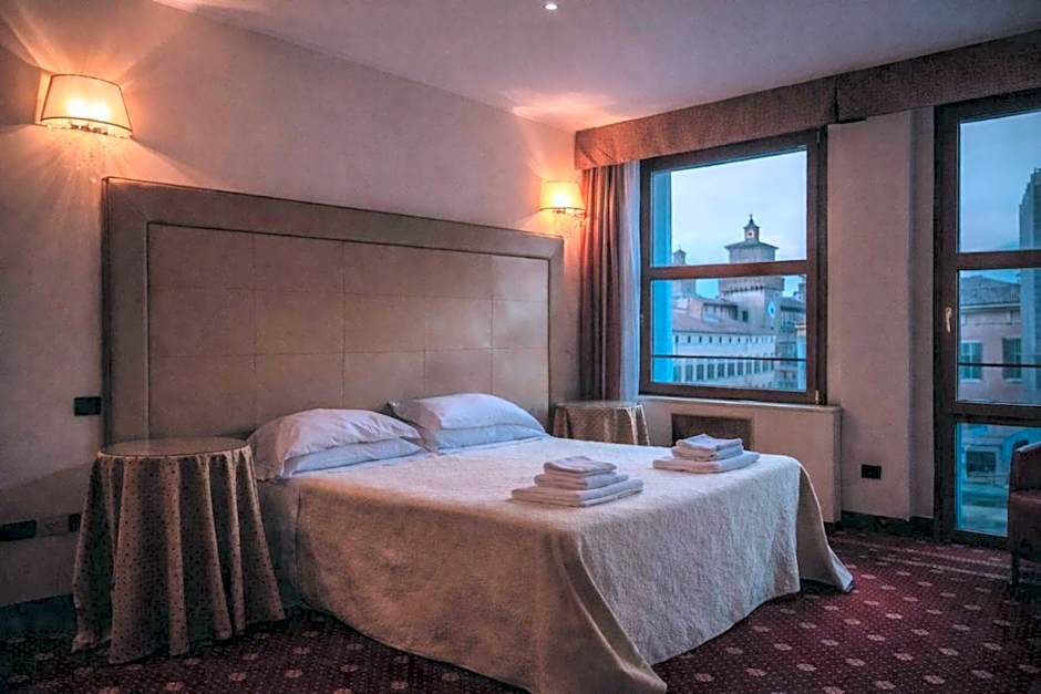 With free WiFi and views of the Estense Castle, this spacious and elegant room offers air conditioning, a flat-screen TV and a fully fitted private bathroom.