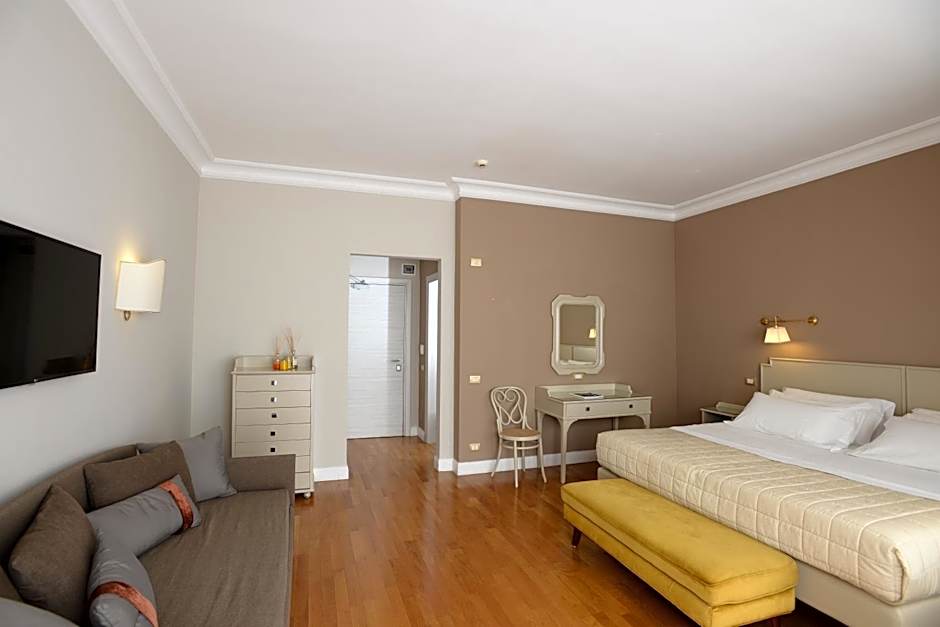 More spacious room with attached bathroom with parquet floors, decorated with modern furniture. Offers air conditioning, free WiFi, and a flat-screen TV with Mediaset Premium channels. Includes access to the spa. It also includes a free afternoon snack which features a selection of sweet products, fresh fruit and yogurt.
