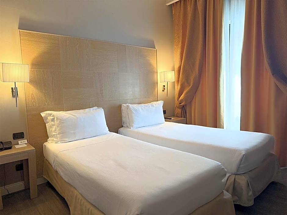The Best Western Hotel Rome Airport offers Queen Rooms with a Sofa Bed for triple occupancy, Standard Queen Rooms for double occupancy, and Standard Twin Rooms for double occupancy. Smoking is not allowed in any of the rooms. The Queen Rooms with a Sofa Bed and the Standard Queen Rooms have Queen size beds, while the Standard Twin Rooms have two Twin beds.