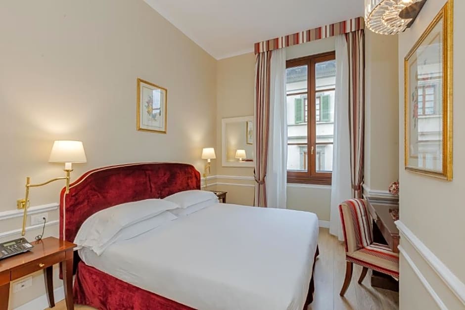 CLASSIC VIEW VIA DEI CALZAIUOLI is 140 square feet and includes either a queen-size bed 150-154 width or 2 single beds 80-130 width plus desk, satellite tv , hairdryer, tea and coffee making facilities , safe, and slippers.