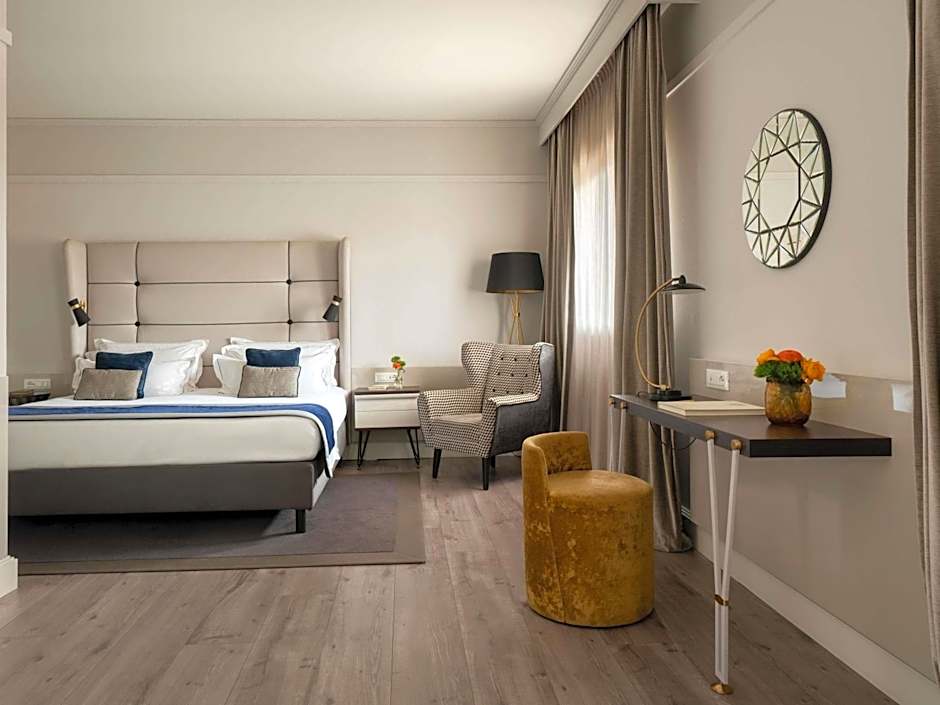 The Hotel Cerretani Firenze - MGallery Collection offers a variety of rooms including Executive Queen Rooms with one queen bed, Superior Twin Rooms with two twin beds, Superior Queen Rooms with one queen bed, Superior Single Rooms with one twin bed, Junior Suites with one king bed, and Junior King Suites with one king bed and a sofa bed. All rooms are non-smoking and can accommodate varying numbers of adults and children. The room sizes range from 140 sqft for the Superior Single Room to 377 sqft for the Junior Suite and Junior King Suite.