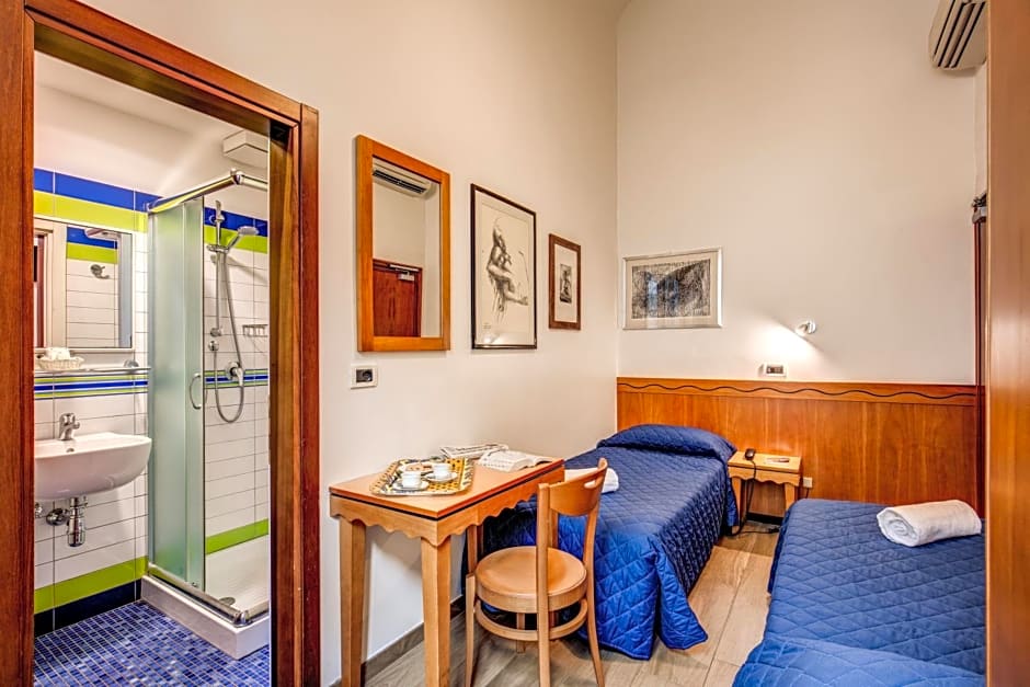 Clean and convenient. Close to the train and sights and js right in the heart of the action. Good food (literally out the door) and shopping. Staff was very helpful including carrying bags up the stairs. I was a solo woman traveler, and I felt very safe. Never been to Italy before. The room was quiet and I enjoyed hearing the rain on the roof tiles. Breakfast was more than enough. Would definitely recommend. Bed was firm and extra large twin. Perfect-o place to crash after sightseeing.