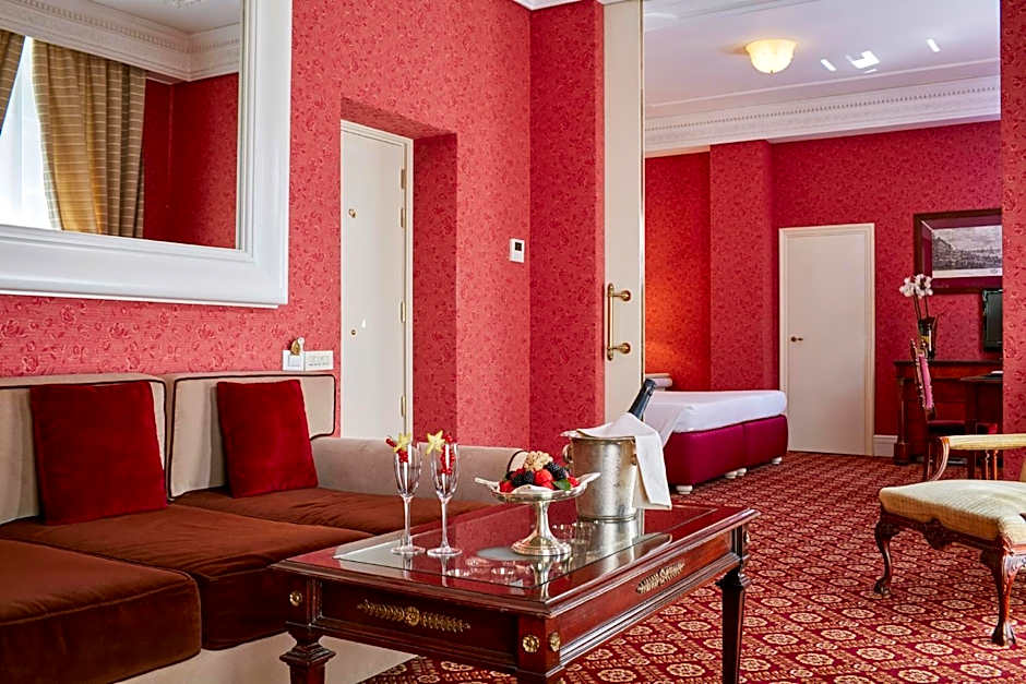 Overlooking either Piazza D'Azeglio Park or the hotel's private garden, this family room is composed of two connecting rooms, each of them with a private bathroom. A Illy coffee machine is also featured. The rooms have a size of about 28 square yards, have a queen-size bed, are embellished with marble bathrooms, some with bathtubs, others with bathtubs and showers, and a prestigious luxury courtesy line.