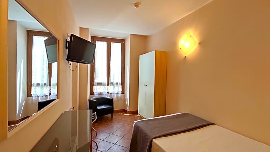 This type of Triple room includes an exclusive private bathroom with bidet shower and hairdryer, complete with a small courtesy set. The triple room offers air conditioning, a flat-screen TV with satellite channels, soundproof walls, a wardrobe and a view of the quiet street. The unit has 2 beds.