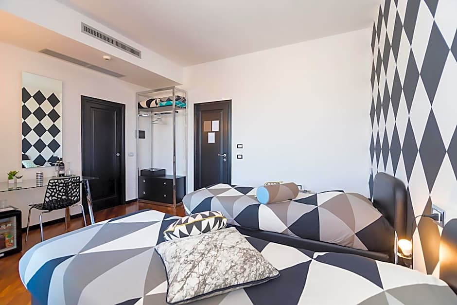 The hotel offers a Superior Double or Twin Room with Terrace, accommodating up to 3 adults and 1 child. This room features a queen size bed, two twin beds, and two sofa beds, spanning 215 sqft in size. Smoking is not allowed in these rooms.