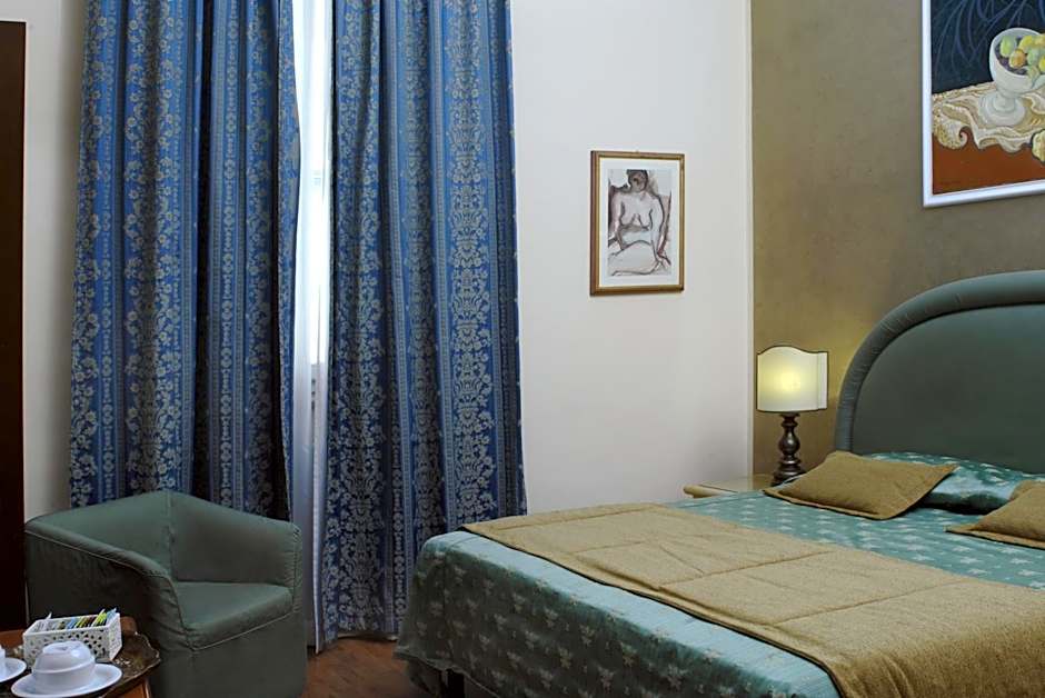 This is a good inexpensive place, two long blocks up from edge of the historic center of town, which I would place at Piazza San Marco, a very nice walk. Walk another two blocks, and there you are at Palazzo Medici, the eventual seat of power. (Even now: I was walking up via Cavour decades ago on the way back to this hotel, the sky darkened above, I looked up, and two low helicopters with soldiers hanging onto ropes ready to spring down were blocking the daylight. A limousine sped over to Palazzo Medici, and out stepped Helmut Kohl.) There is an elevator, though you have to hold the button down somewhat tediously all the time you are calling or riding it. The lady in charge is a delightful person, and the room was big enough and well kept. You have to be patient for the hot water, but it comes. If you need to buy things —not souvenirs or treasures— you can walk two blocks the other direction to Piazza Libertà, where ordinary Italians shop at normal prices. A great find!