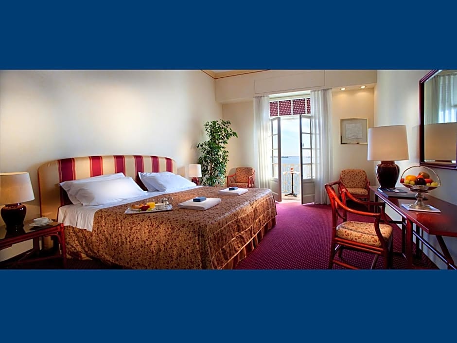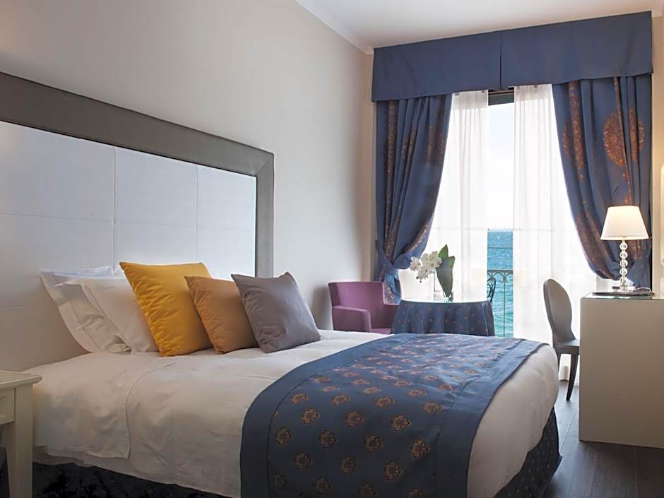 Large suite boasting a seating area, marble bathroom and a balcony overlooking Lake Garda. It includes a satellite TV, individually controlled air conditioning, and soft bathrobes plus slippers.