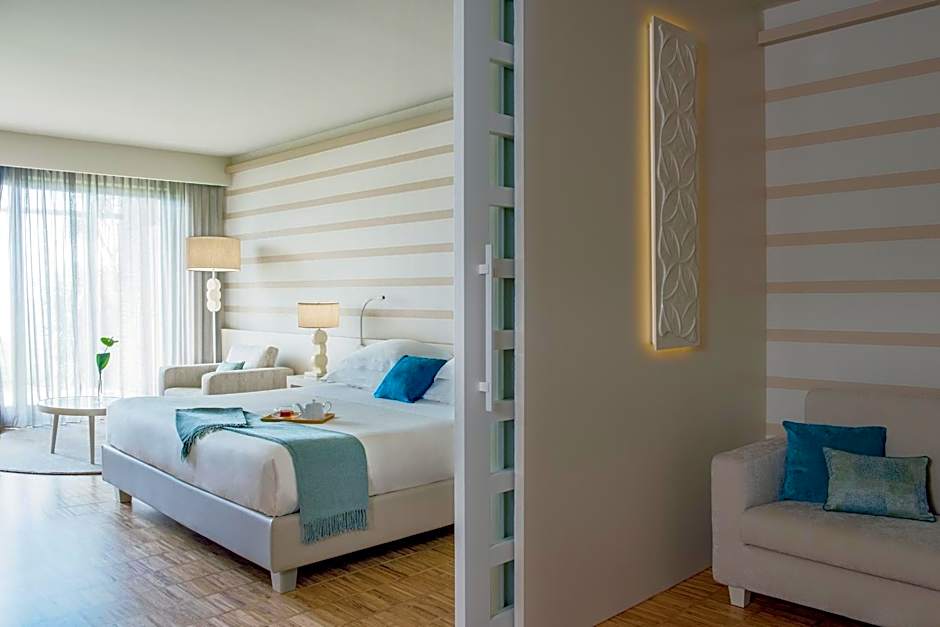 At the Lefay Resort & Spa Lago Di Garda, there are various types of rooms available. These include Junior Suites with Lake View and Terrace, Deluxe Junior Suites, Luxury Suites with Jacuzzi and Lake View, and Suites with Spa Bath and Lake View. Smoking is not allowed in any of the rooms. All rooms have a king-size bed and accommodate 2 adults with no children. The sizes of the rooms range from 538 sqft to 1442 sqft.