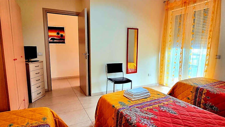 Simple accommodation in Gela, to stay couple of days. Lavazza capsule coffee machine in room, refrigerator and kettle. Our apartment was two rooms, one had queen bed and one single bed and other had one single bed. Suitable for vacation with kids.