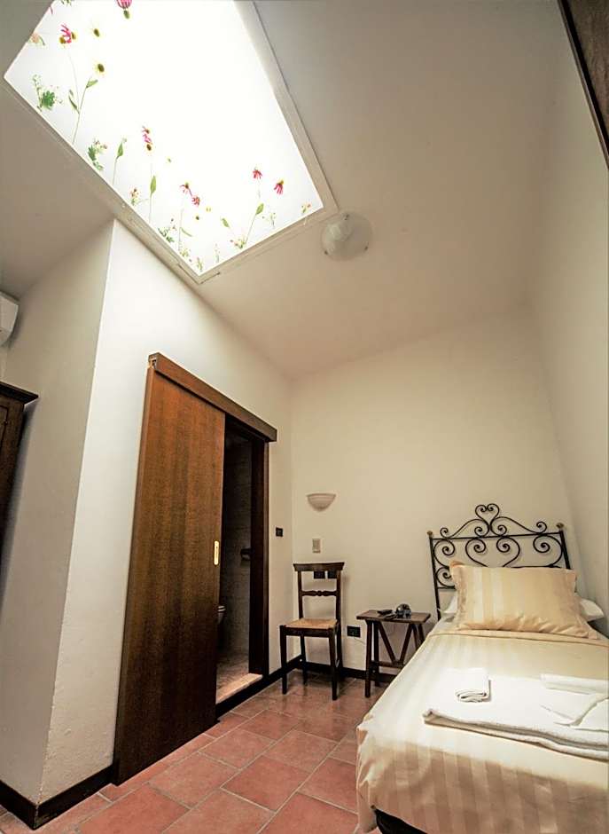 This single room features a skylight, mini-bar, tile/marble floor, air conditioning and a flat-screen TV. This room is located on the top floor with no elevator.