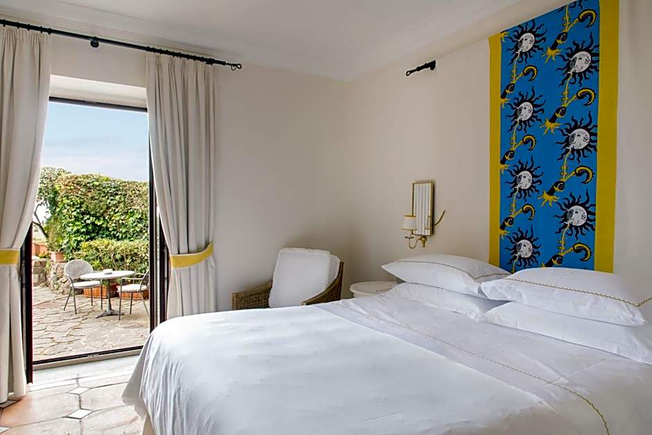 Featuring a large sea-view terrace with small hydromassage pool and outdoor seating area, this extra spacious suite offers characteristic Ischia tiles and refined Mediterranean-style furnishings.