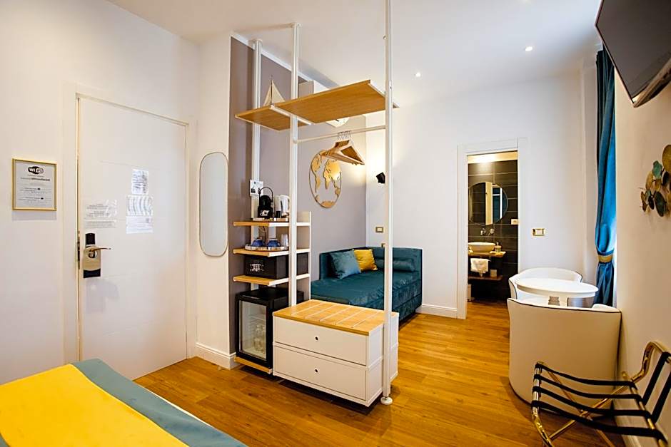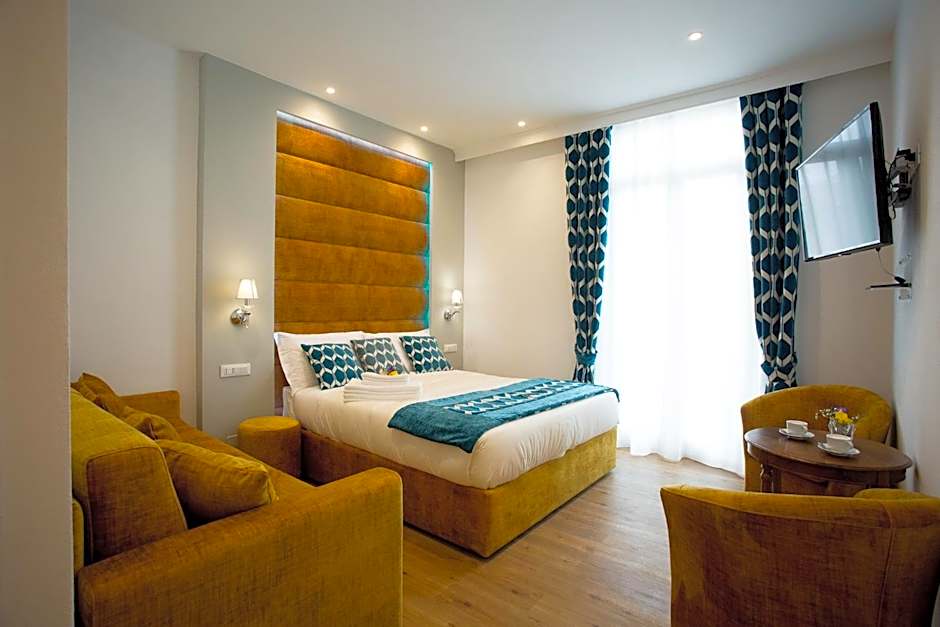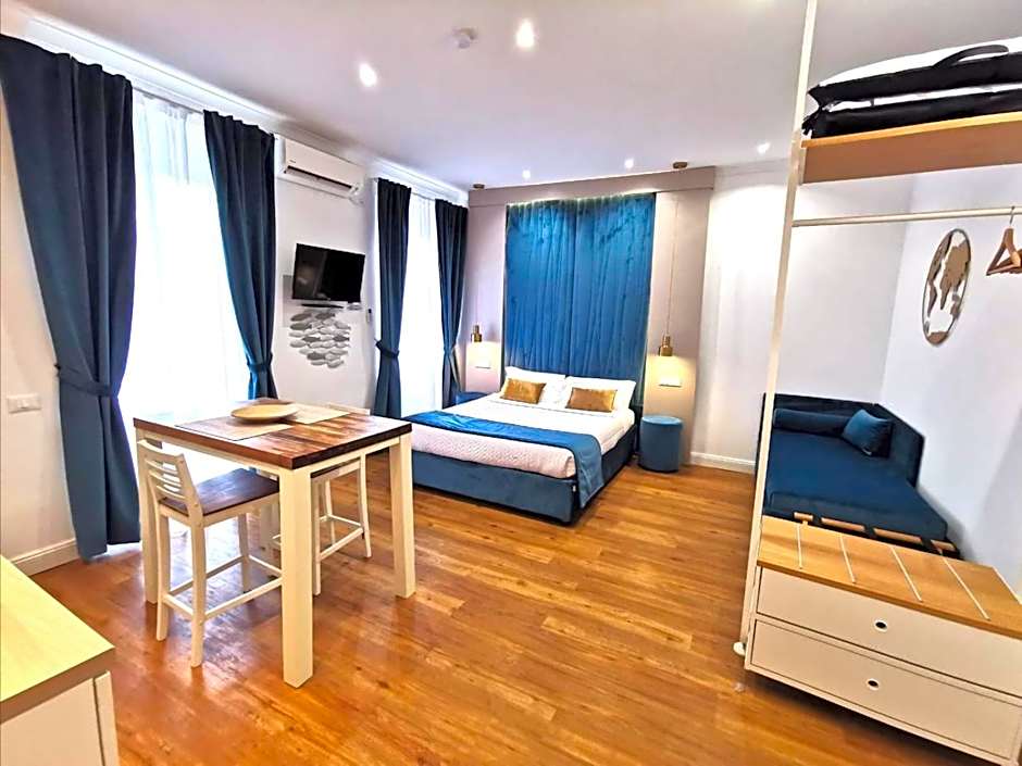 There is a room for every kind of traveler, from the Deluxe Junior Suite—a two-person suite with a sofa bed—to a selection of studios, doubles, and apartments. The Junior Suite comes with a queen bed and room for a child, while the Superior Studio, Queen pairs a compact layout with a queen bed and a sofa bed. For larger groups, the Apartment Annex accommodates up to 10 adults and 6 children, and the Superior Apartment offers a twin bed plus a sofa bed for flexible sleeping arrangements.