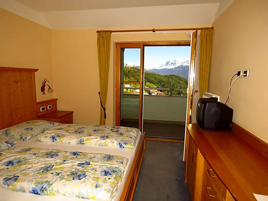 Picturesque family run hotel with the view of Dolomites in the background. Relax on the balcony with the view . Comfortable room and very clean . Great breakfast in a room with panoramic view of mountains . Secured car park and free guest pass for public transport to and from the hotel. Restaurant and bar on site serving local cuisine- staffs are polite and friendly and welcoming. Would love to go back again in near future!