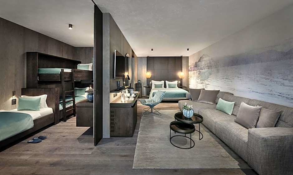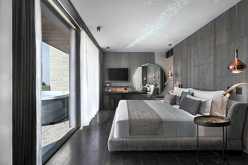 The Quellenhof Luxury Resort Lazise offers a variety of room types, including Suites with Hot Tubs, Two-Bedroom Apartments, Deluxe Double Rooms, Junior Suites with Terraces, Deluxe Suites, and Family Suites. All rooms are non-smoking and offer different accommodates such as sleeping arrangements for 2 to 4 adults. Bed sizes range from King to Queen to Bunk beds, depending on the room type.