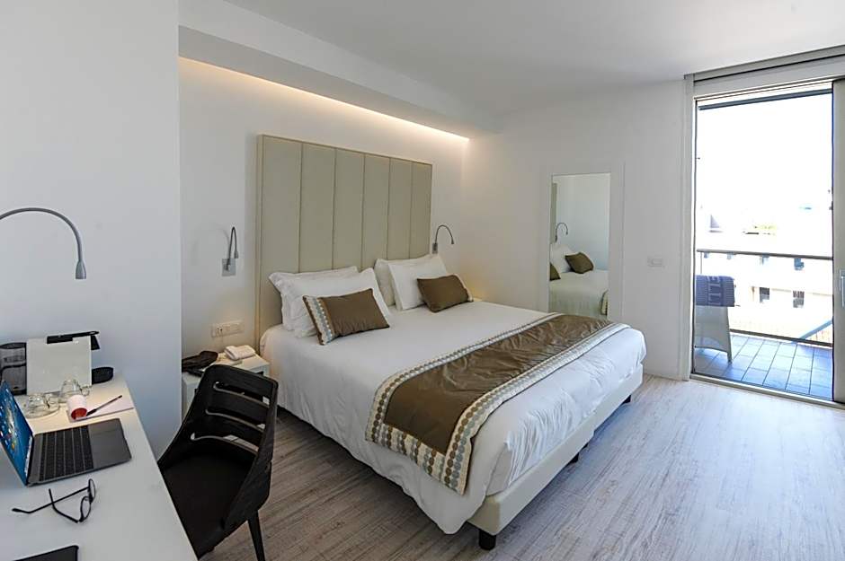 The Bellini Relais hotel offers a variety of rooms including Junior Suites, Deluxe Suites, Apartments, Triple Rooms, Double Rooms, and TwinDouble Rooms. Most rooms have beach access and do not allow smoking. The rooms can accommodate 2 to 4 adults, and bed sizes range from Double to Queen to King, with some rooms also including sofa beds or twin beds.