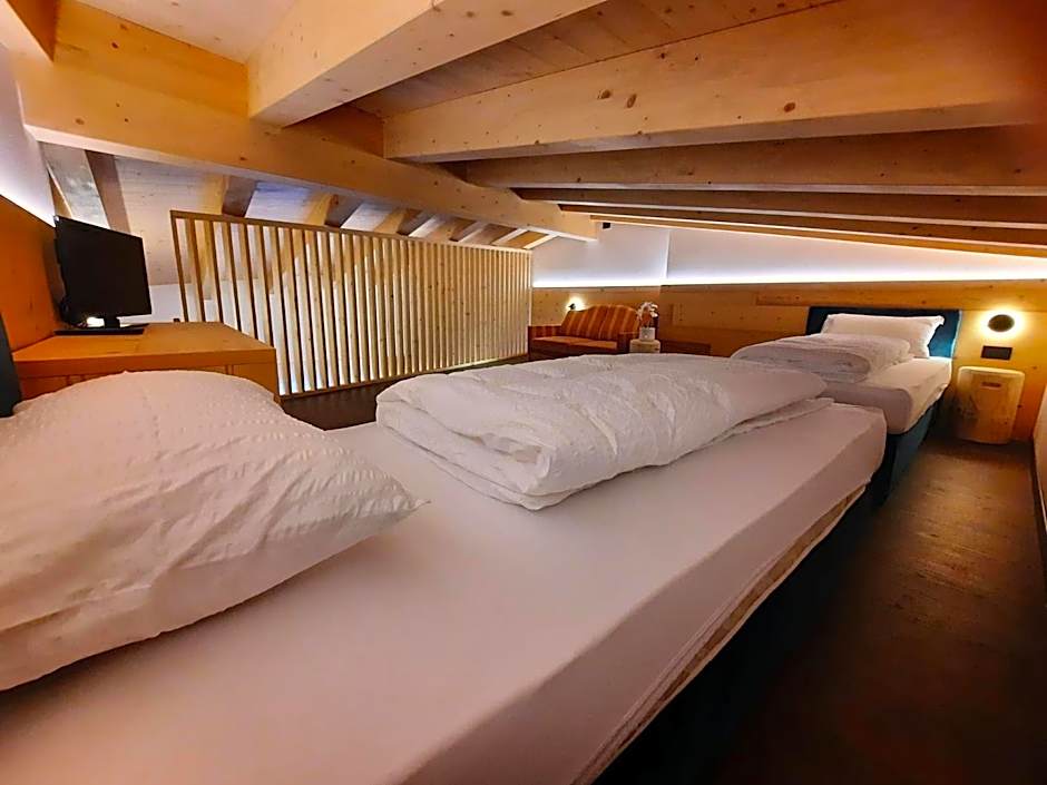 The spacious family room features soundproof walls, a mini-bar, a balcony with mountain views as well as a private bathroom boasting a walk-in shower. The unit has 6 beds.
