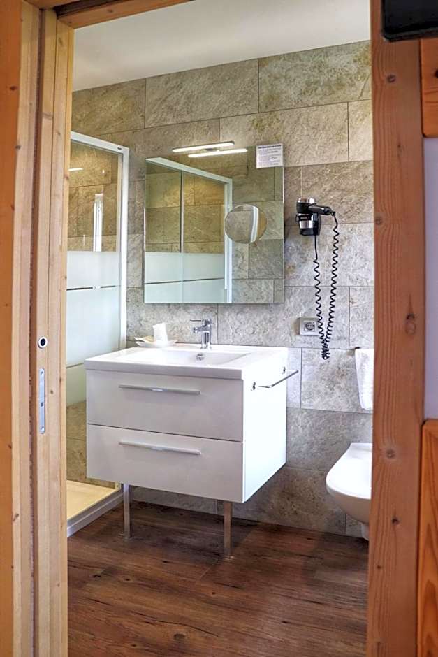 The deluxe is a slightly larger room that has been renovated and has a traditional South Tyrol design. Every room features wood floors, an LCD TV and private bathroom. A safety deposit box is available at an extra cost.
