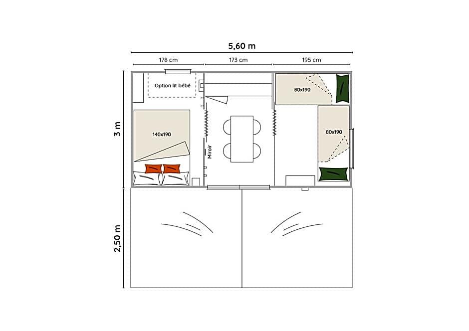 Quiet, countryside area with a few smaller towns around (you need a car). We were there off-/very early season, so limited load on the facilities. With a bungalow on a larger camping site, the pools are correspondingly larger.